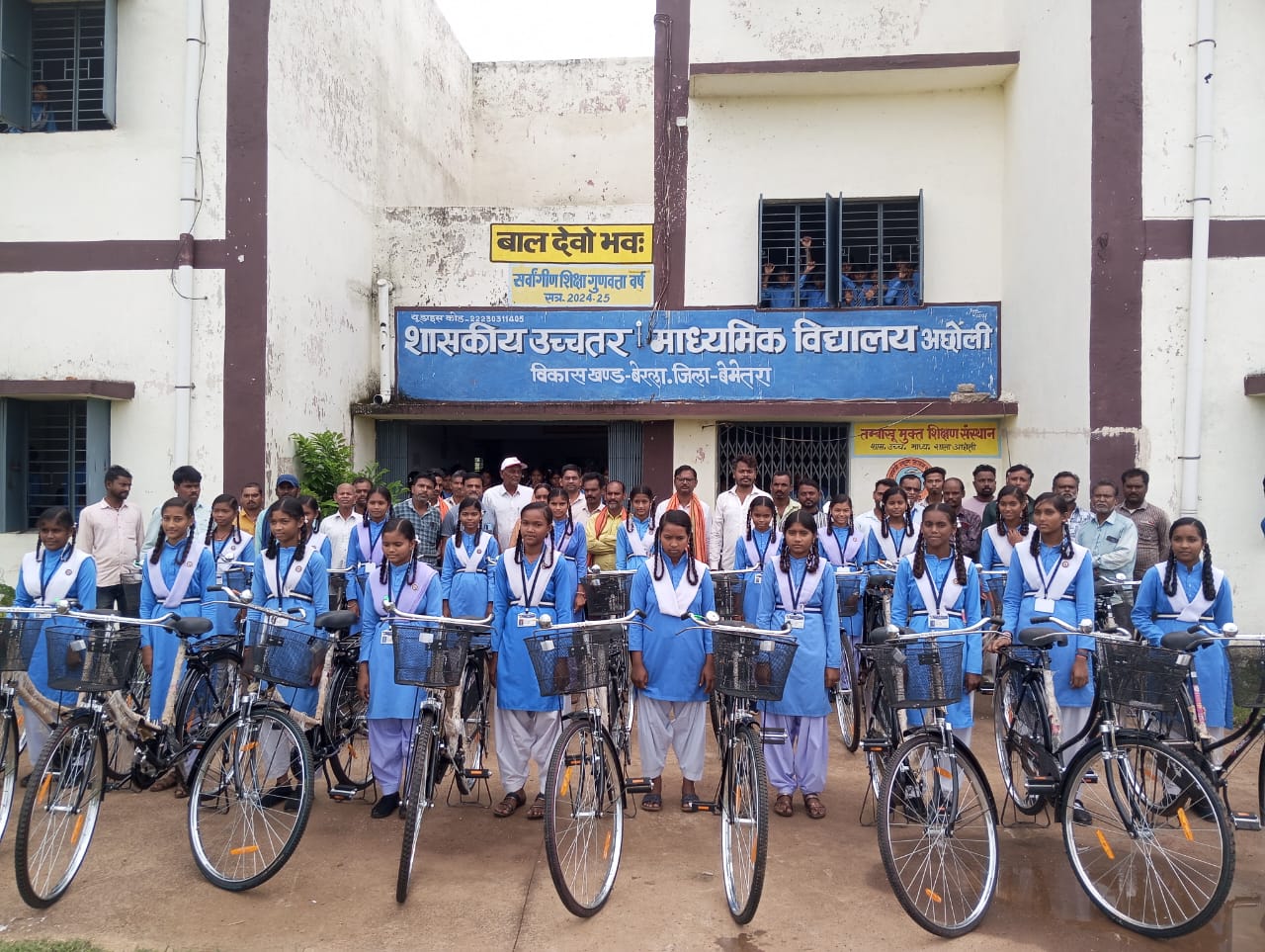 बेरला (ट्रैक सीजी/हेमंत सिन्हा)। शासकीय उच्चतर माध्यमिक विद्यालय अछोली में सरस्वती साइकिल योजना अंतर्गत छात्राओं को साइकिल वितरण किया गया। इस अवसर पर विद्यालय समिति अध्यक्ष उदयराम साहू ने बच्चों को संबोधित करते हुए विद्यालय में हो रहे विकास एवं उपलब्धियों की जानकारी दी।