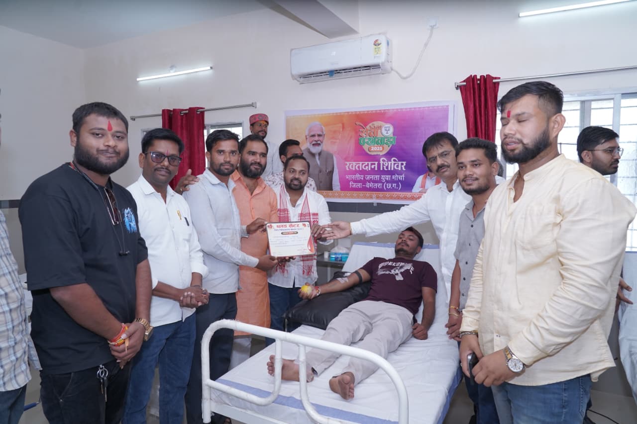 बेमेतरा (ट्रैक सीजी)। प्रधानमंत्री श्री नरेंद्र मोदी जी के जन्मदिवस के अवसर पर भारतीय जनता पार्टी द्वारा चलाए जा रहे सेवा पखवाड़ा कार्यक्रम के अंतर्गत जिला चिकित्सालय बेमेतरा में भारतीय जनता युवा मोर्चा के नेतृत्व में एक विशाल रक्तदान शिविर का आयोजन किया गया।